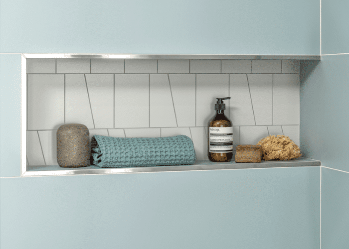L’autre astuce est de prolonger la douche à l’italienne d’un mur à l’autre. Si votre salle de bain est très petite, vous aurez bien plus de plaisir à vous prélasser dans une grande douche. Oubliez la douche carrée qui vous limite dans vos mouvements.