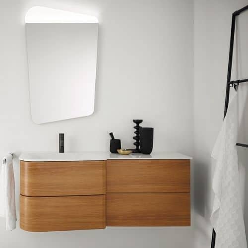 BADU est proposée en 14 finitions différentes, dont quatre aux nuances métalliques. Les plans de toilette en pierre de synthèse sont extrêmement faciles à entretenir.