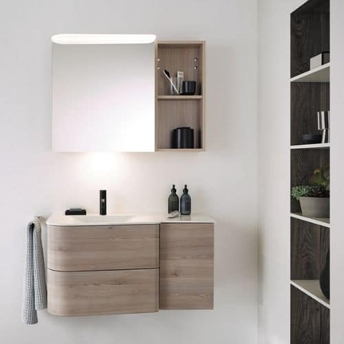 Les lignes vintages de la collection BADU s’inspirent des tendances des années 50 et 60. La collection propose deux approches pour ses meubles salle de bain : monochrome ou bicolore.