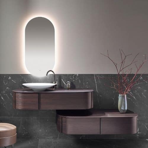 Ronde et linéaire sont les deux adjectifs qui définissent cette collection. En effet, des courbes élégantes habillent la collection LAVO 2.0 : colonnes, commodes, consoles et armoires miroir.