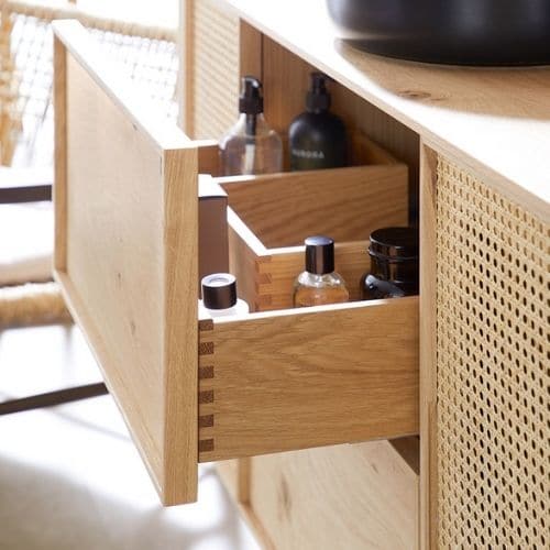 Le plus incontournable : les meubles sont disponibles en option avec un cannage viennois très tendance.