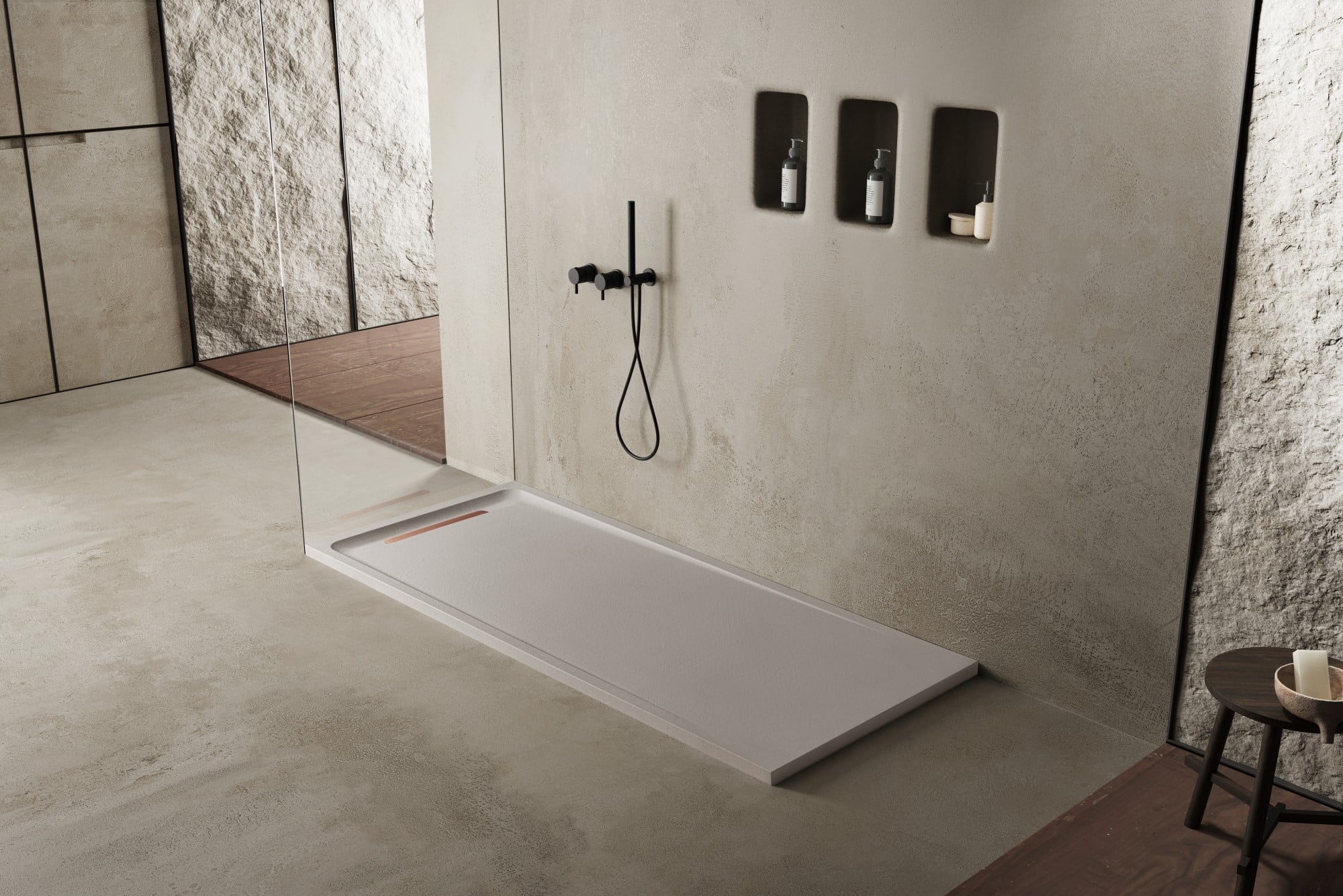 Sperit offre une solution idéale pour répondre à une variété de besoins. Ses lignes épurées, une légère courbure favorisant l’évacuation de l’eau, des bords texturés et une grille ergonomique en font un receveur de douche polyvalent adapté à tous les types de projets. Disponible en plus de 30 dimensions, c’est le receveur de douche idéal qui réinvente le concept traditionnel. Deux nouvelles textures exclusives évoquent le béton et le tissu – Concrete et Fabric – en plus de permettre une personnalisation dans n’importe quelle couleur de la charte RAL. 10 couleurs standards du catalogue. Il est également disponible sur mesure.
