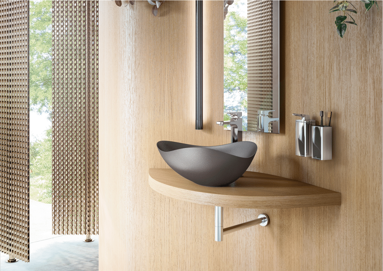 Ona est une collection salle de bain inspirée par la nature méditerranéenne : simple, chaleureuse et intemporelle. Ses lignes douces rendent hommage aux paysages calmes et organiques, avec des produits à la fois fonctionnels et élégants, jamais froids, mais toujours harmonieux. La gamme propose un univers complet pour créer une salle de bain cohérente et apaisante, mêlant design affirmé et confort au quotidien.