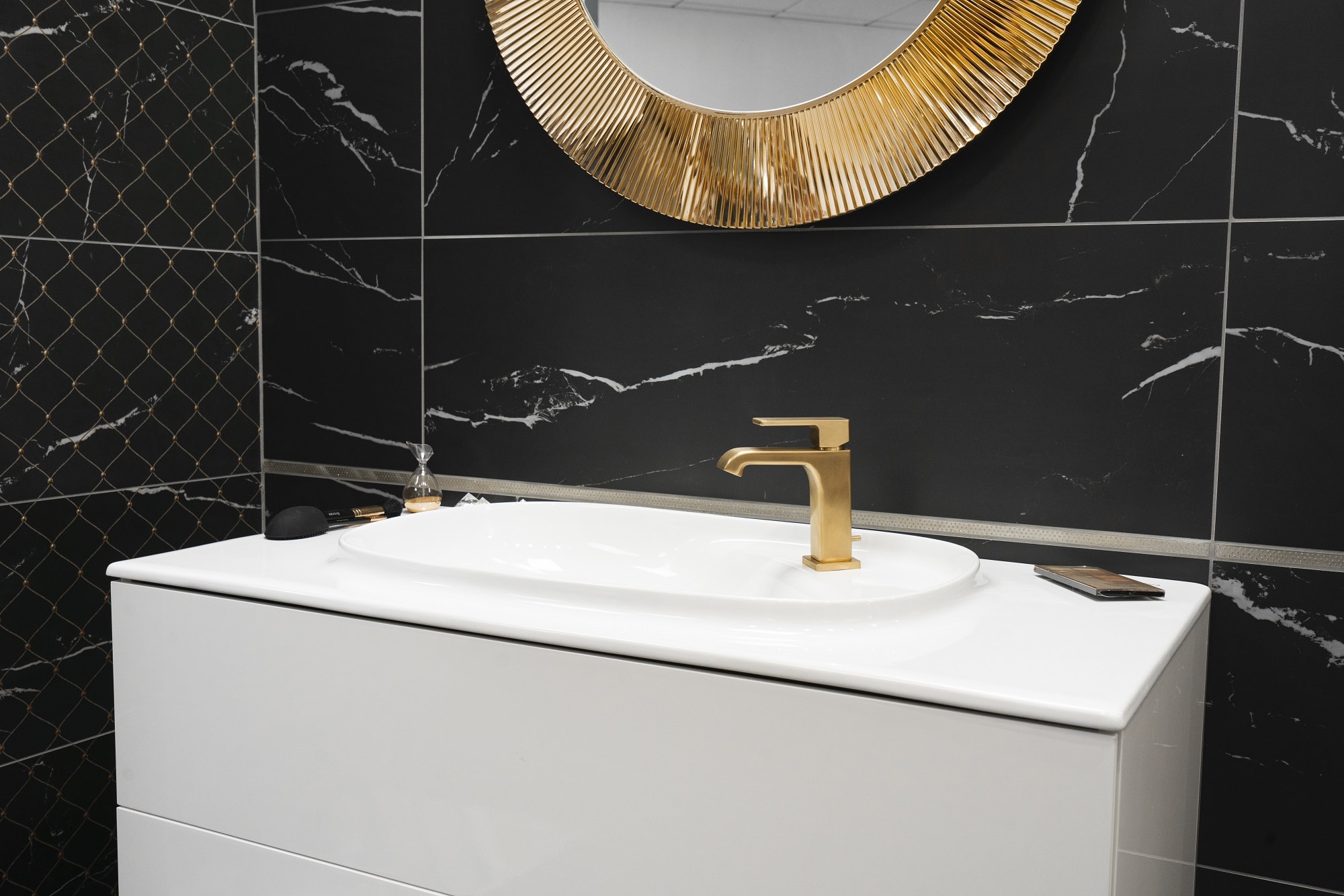 Il en manque un ! Ca alors, il manquait l’or comme autre élément salle de bain chic et glamour, en plus du marbre ! Cette couleur, se matérialise par tous les moyens possible : peinture, revêtement carrelage, robinetterie, ameublement ou accessoires. Les dorures se marient avec presque toutes les couleurs et éléments salle de bain. Cependant, c’est une couleur plutôt forte et imposante, alors on l’accompagnera plutôt de tons neutres comme le blanc ou le noir. Le vrai chic c’est de connaitre le savant mélange de flamboyance et de sobriété, nous en sommes s’or !