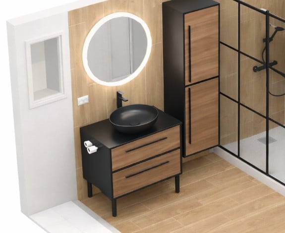 • Vasque et robinetterie noires pour une finition contemporaine