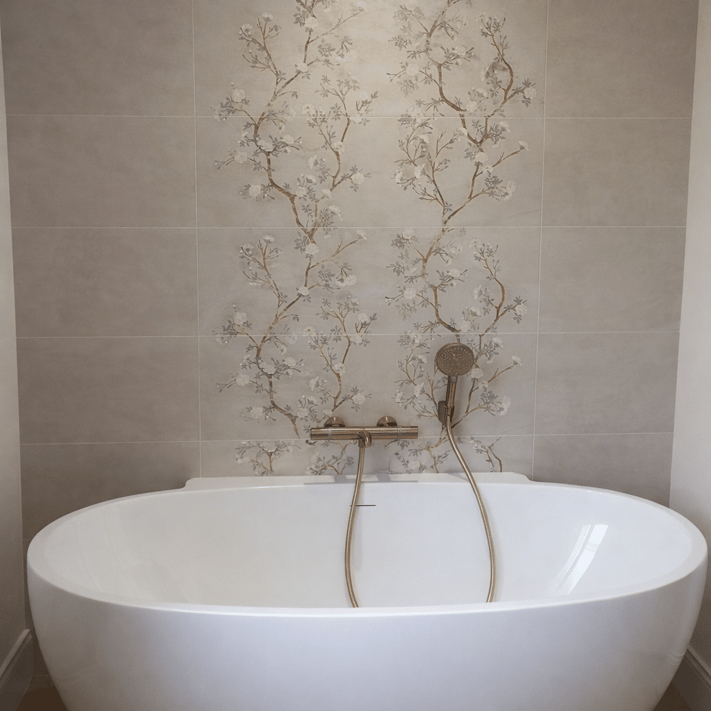 Faïence botanique & laiton brossé pour une salle de bain raffinée à Angers