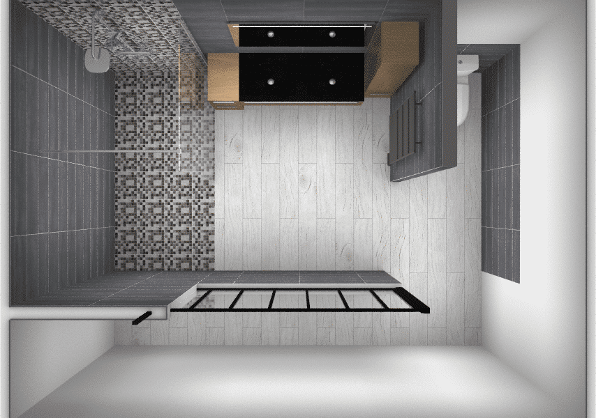 - Une mosaïque pour délimiter l’espace douche et intégrer une touche de fantaisie.