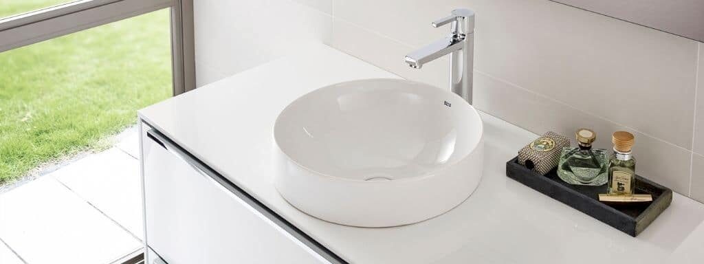 - Vasque à poser : il faut veiller à ce que la robinetterie soit adaptée pour éviter les éclaboussures.
